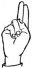 На ћирилици написано САНДРА МЕЧАНИН састоји се из 13 слова [?]. Исписано ћириличном једноручном азбуком за глувонеме: